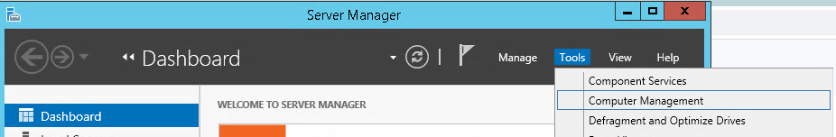Di Server Manager, pilih “Tools” di pojok kanan atas, lalu pilih “Computer Management”.