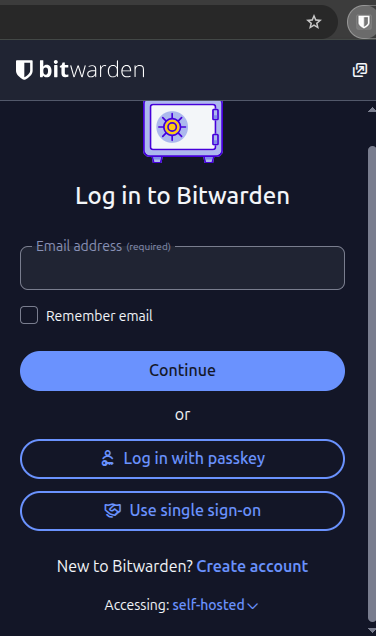 • Klik ikon Bitwarden di pojok kanan atas browser Anda.