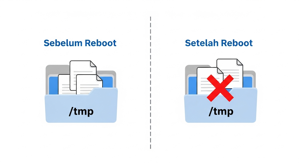 akan dibersihkan secara otomatis saat sistem di-reboot. Pada banyak sistem Linux modern yang menggunakansystemd