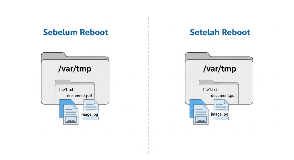 tidak akan dihapus secara otomatis saat sistem di-reboot. File-file di sini hanya akan dihapus setelah jangka waktu tertentu (misalnya, 30 hari), atau jika ada program yang secara eksplisit menghapusnya. - Fungsi: Digunakan untuk file yang bersifat sementara namun penting untuk dijaga keberlangsungannya, bahkan jika sistem mengalami restart.